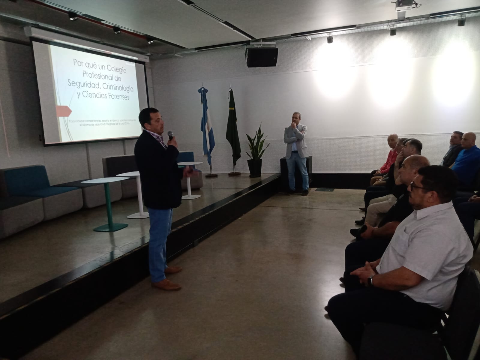 El lic. Jorge Castillo, director de la Licenciatura en Seguridad, abrió la jornada destacando el rol del colegio profesional como garantía de respaldo, legitimidad y crecimiento continúo.