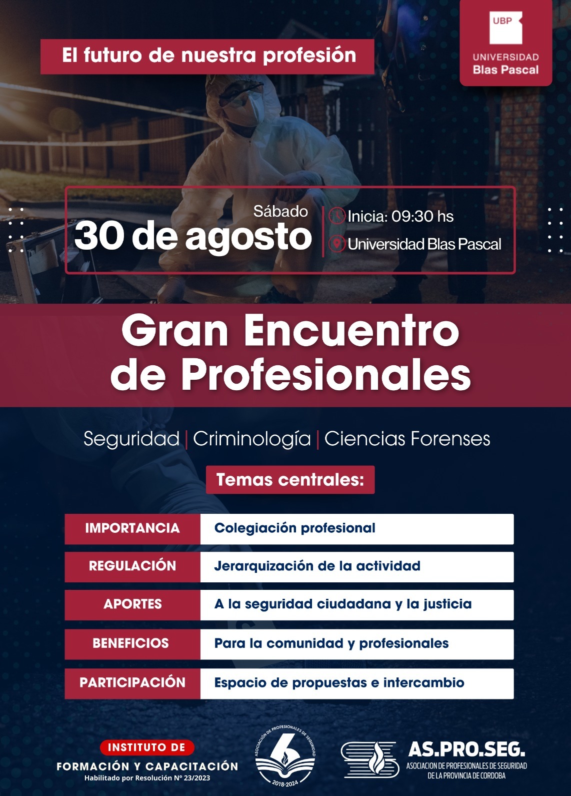 Durante la jornada disertaron diferentes técnicos de seguridad y especialistas de la materia, entre ellos el Lic. Walter Daniel Benitez, Lic. Luz Milena Crotto Salomón y Gonzalo Sebastian Murua, entre otros referentes.