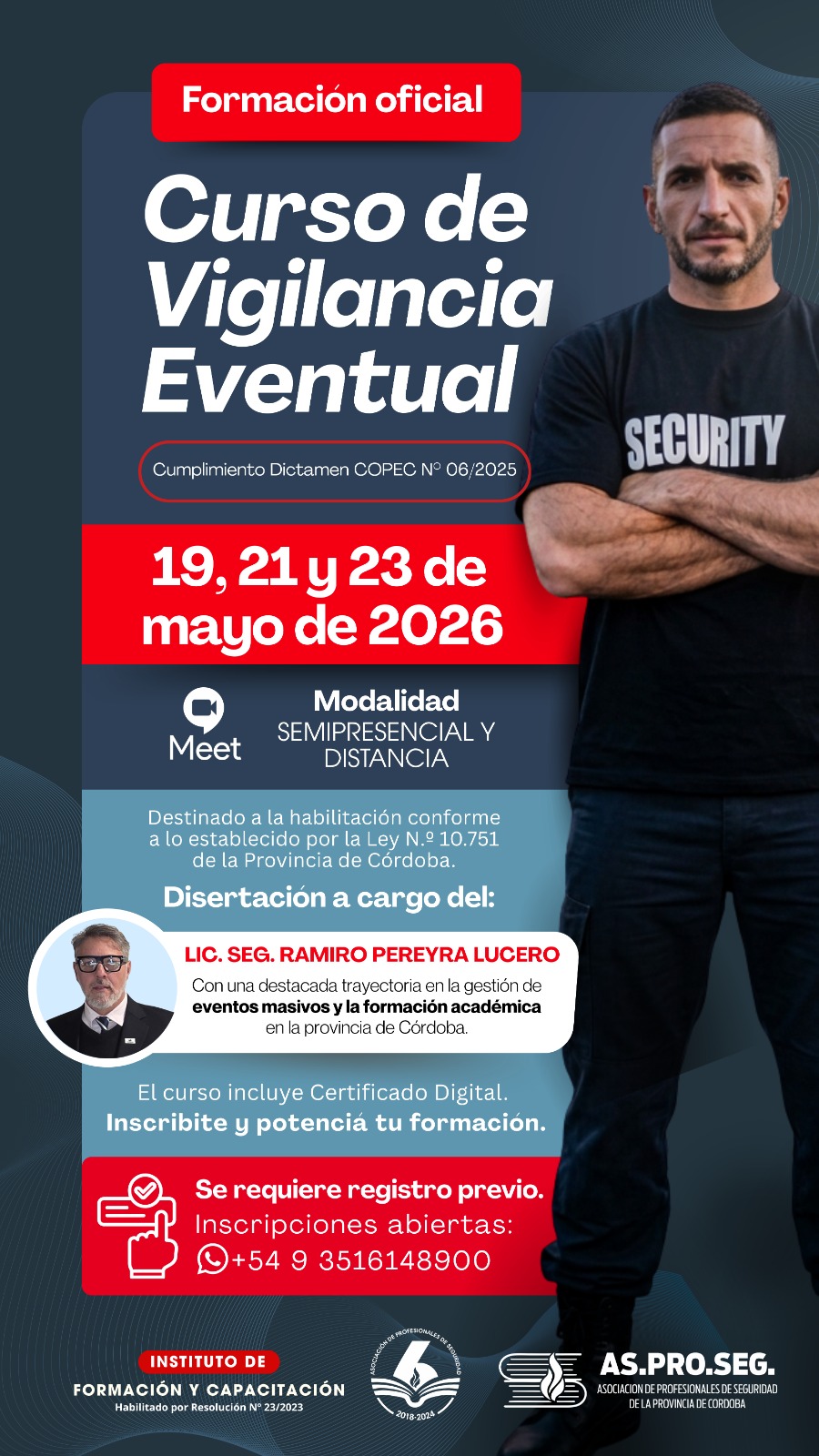 La creciente realización de eventos masivos exige la formación de personal capacitado para desempeñar funciones de vigilancia eventual, control de admisión y permanencia, garantizando condiciones de seguridad adecuadas para los asistentes. En este marco, resulta indispensable contar con recursos humanos idóneos que actúen bajo principios de prevención, disuasión y respuesta proporcional ante situaciones de riesgo.